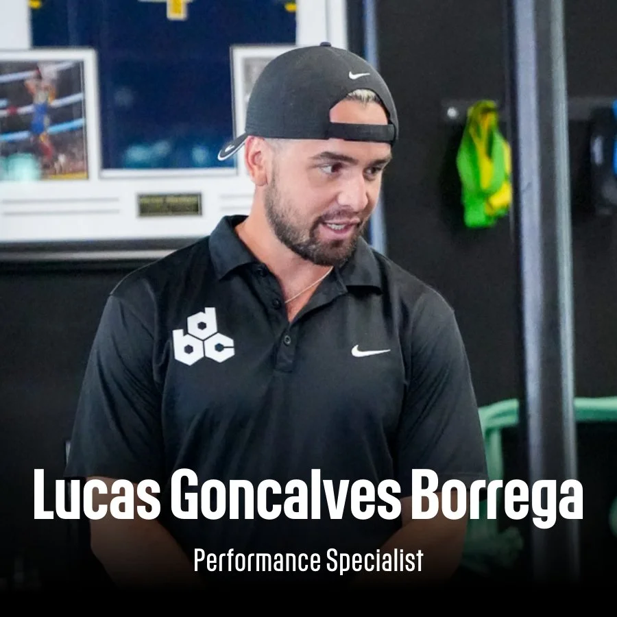 Lucas Goncalves Borrega, a performance specialist, wearing a black Nike cap and shirt with a logo, speaking indoors with sports images in the background.